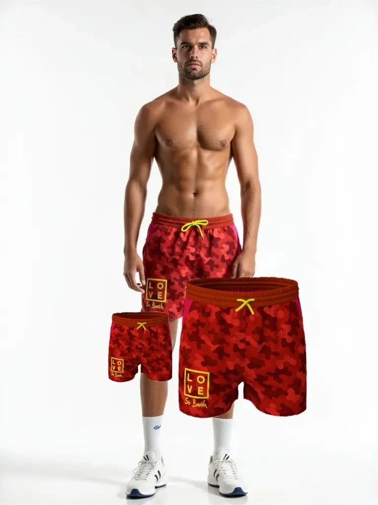 LOVE “Bahamas” Swim Shorts – Matching Duo for Father & Son | Lightweight Mesh with St Barth Print