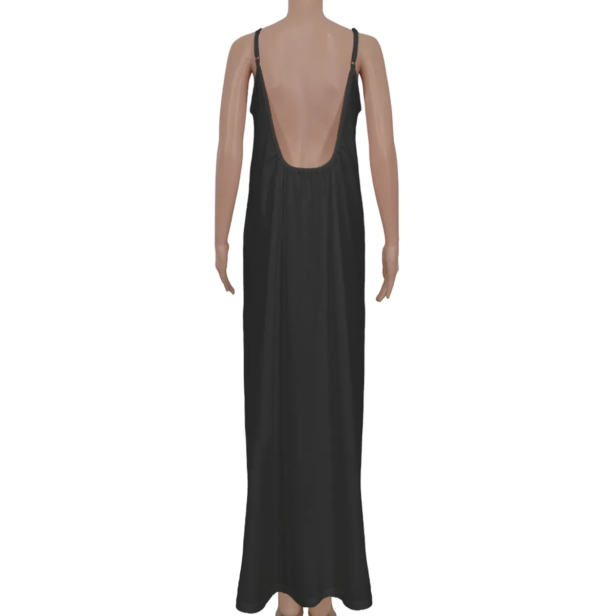 Its unique design flatters your silhouette with a plunging back that will capture everyone’s attention. Perfect for an elegant evening, pair it with high-heeled sandals for a cocktail party, or opt for a more relaxed look with refined flat shoes on warm summer days by the sea.