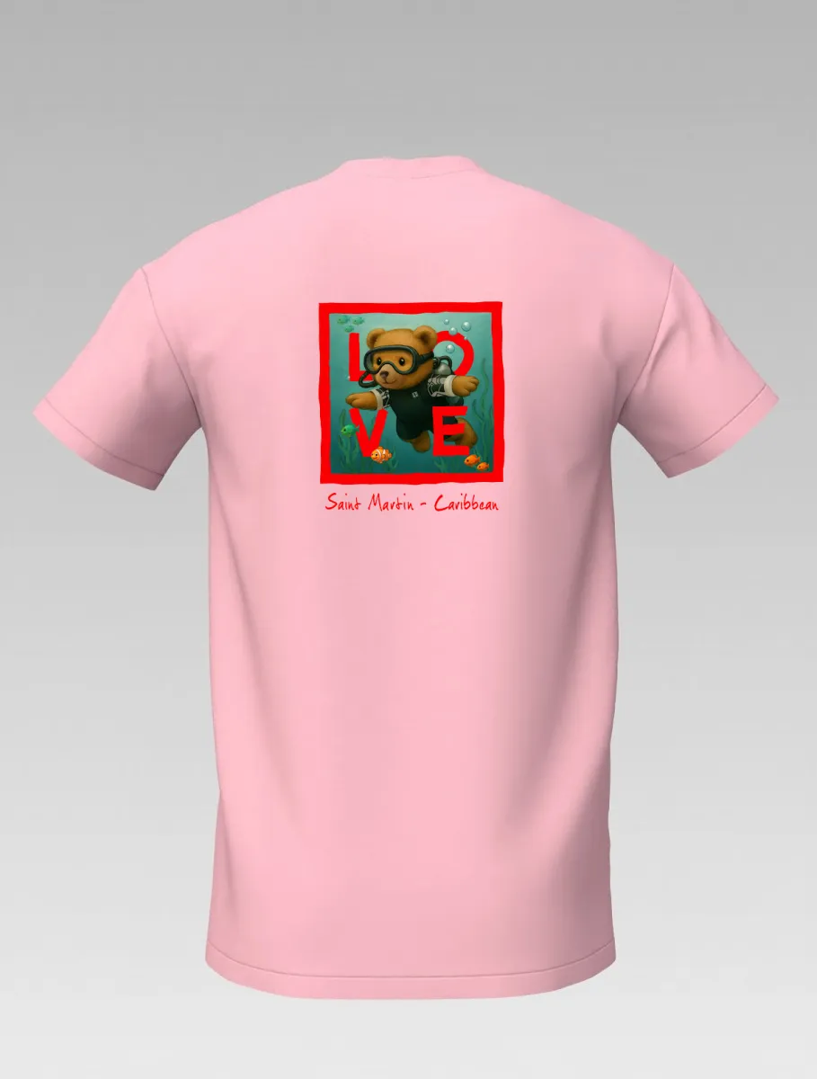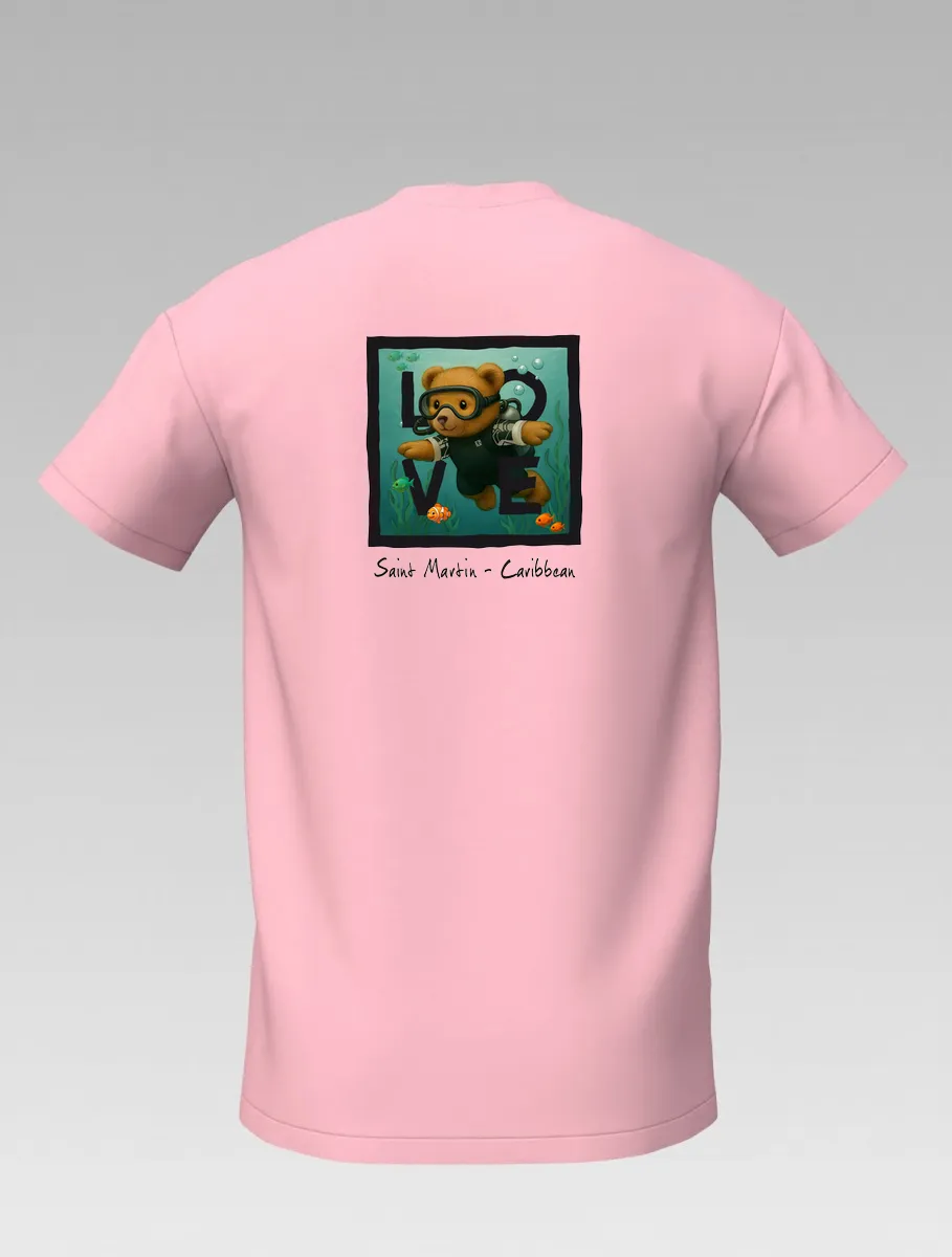 Kid’s Pink T-shirt – The Bear’s Underwater Adventure – Signature St Martin – LOVE Edition