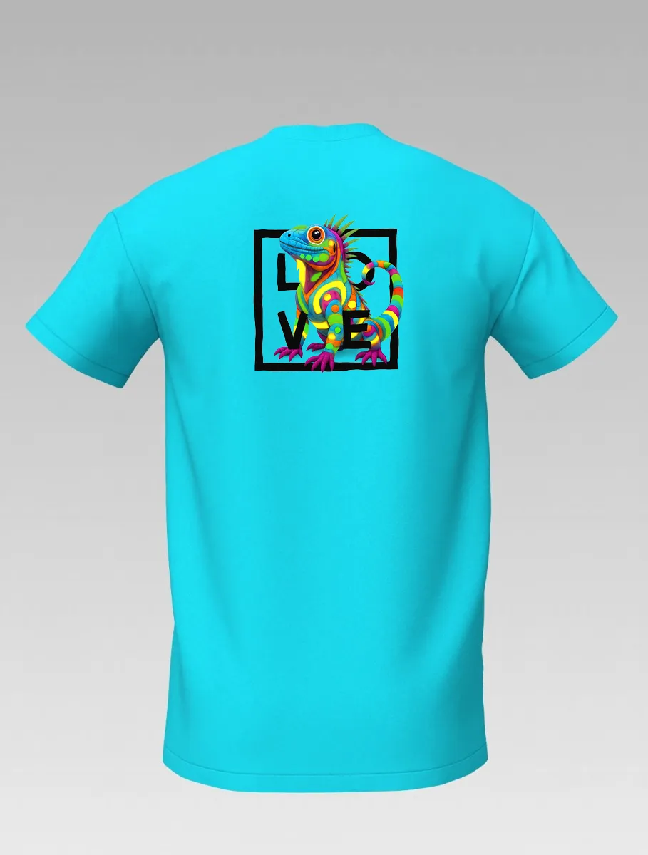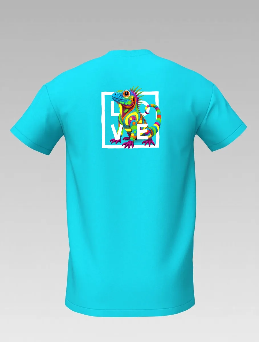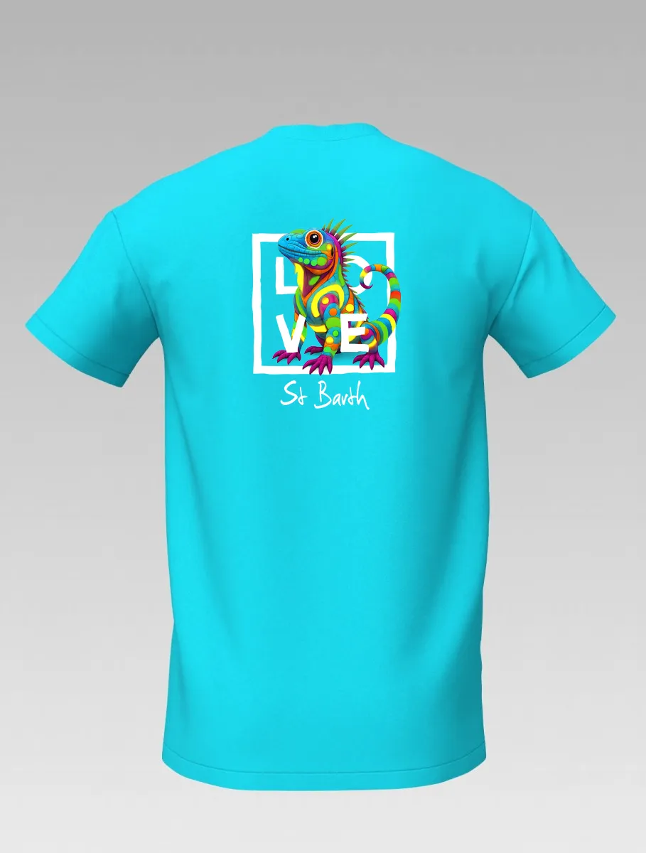 Kids’ turquoise T-shirt – Cotton and elastane – Iguana of St. Barth San Martin – LOVE Children’s Edition – A playful tribute to the island’s spirit in color, comfort, and tradition.