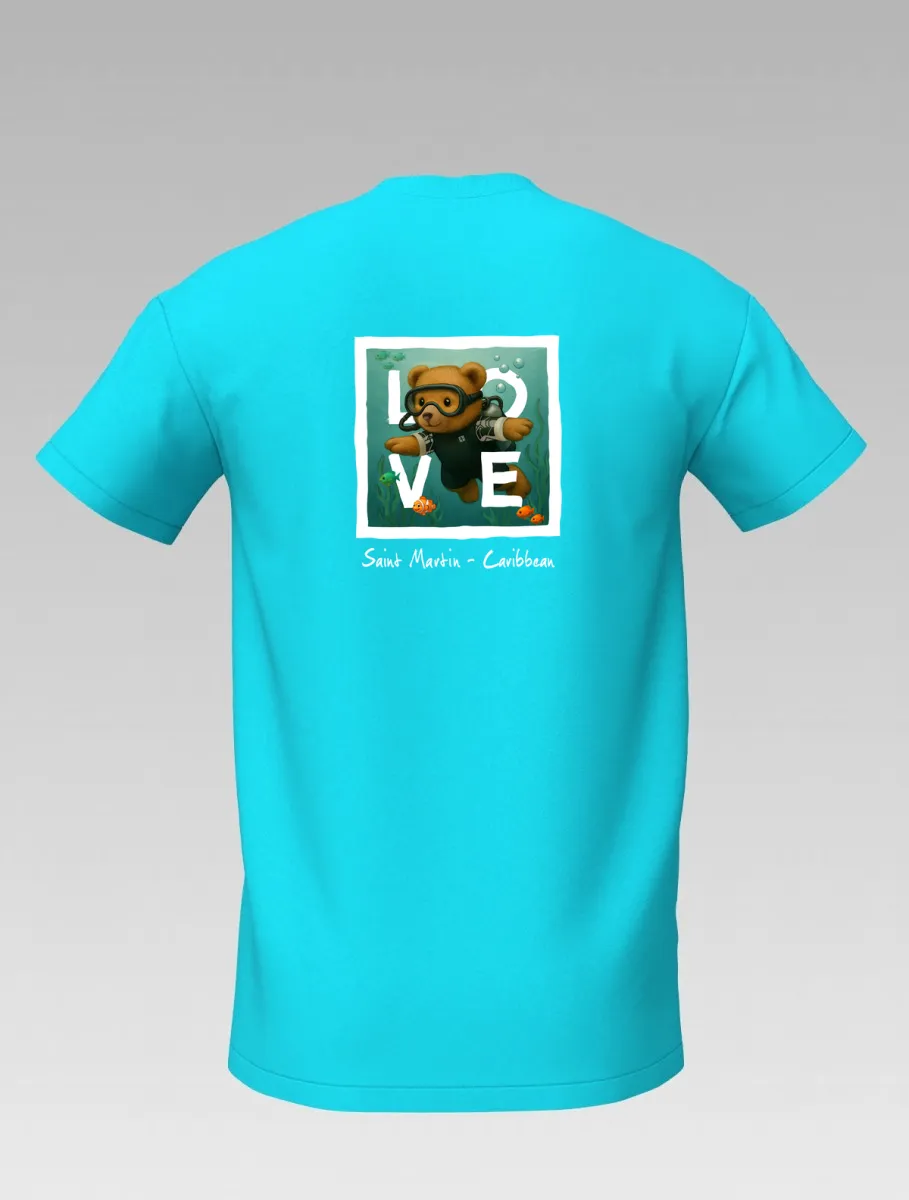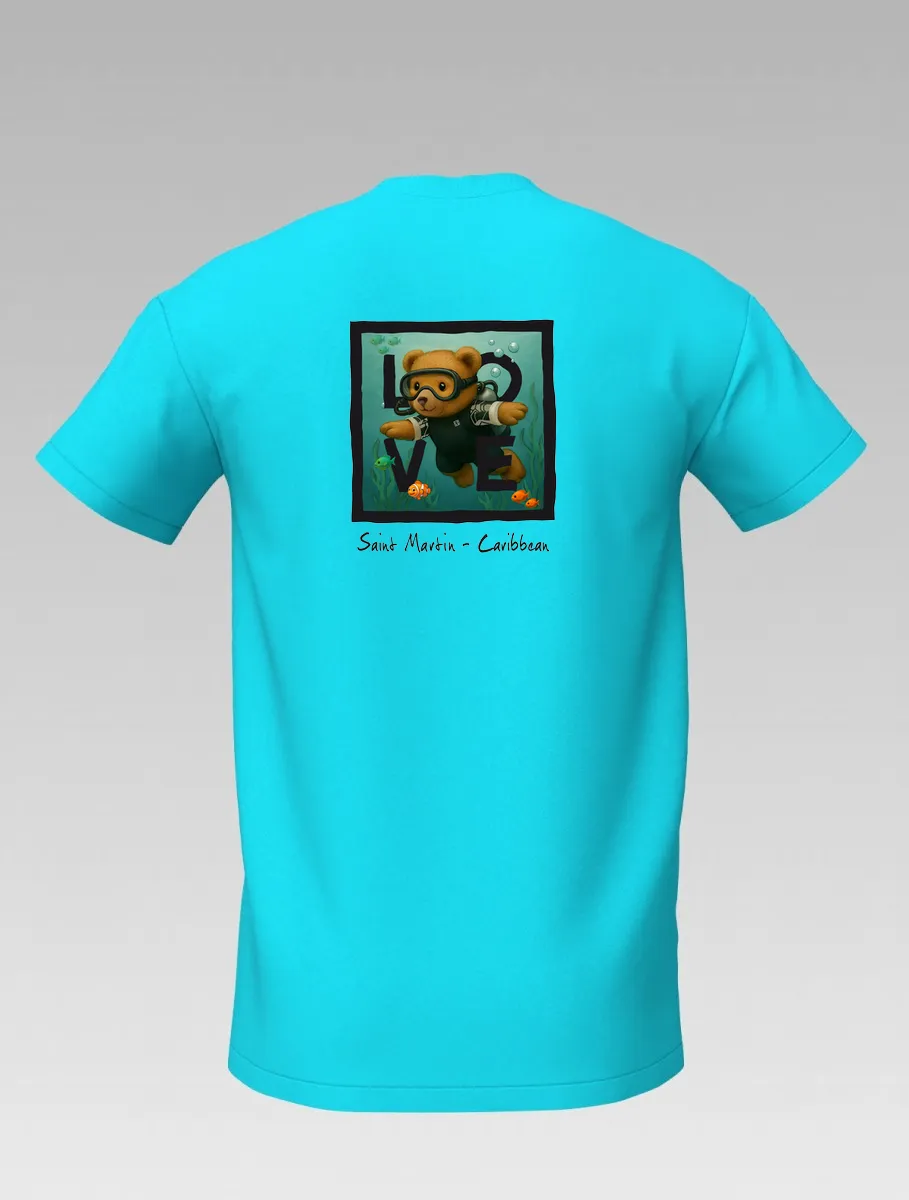 Kids’ Turquoise T-shirt – Diving Bear – Signature St Martin – LOVE Edition