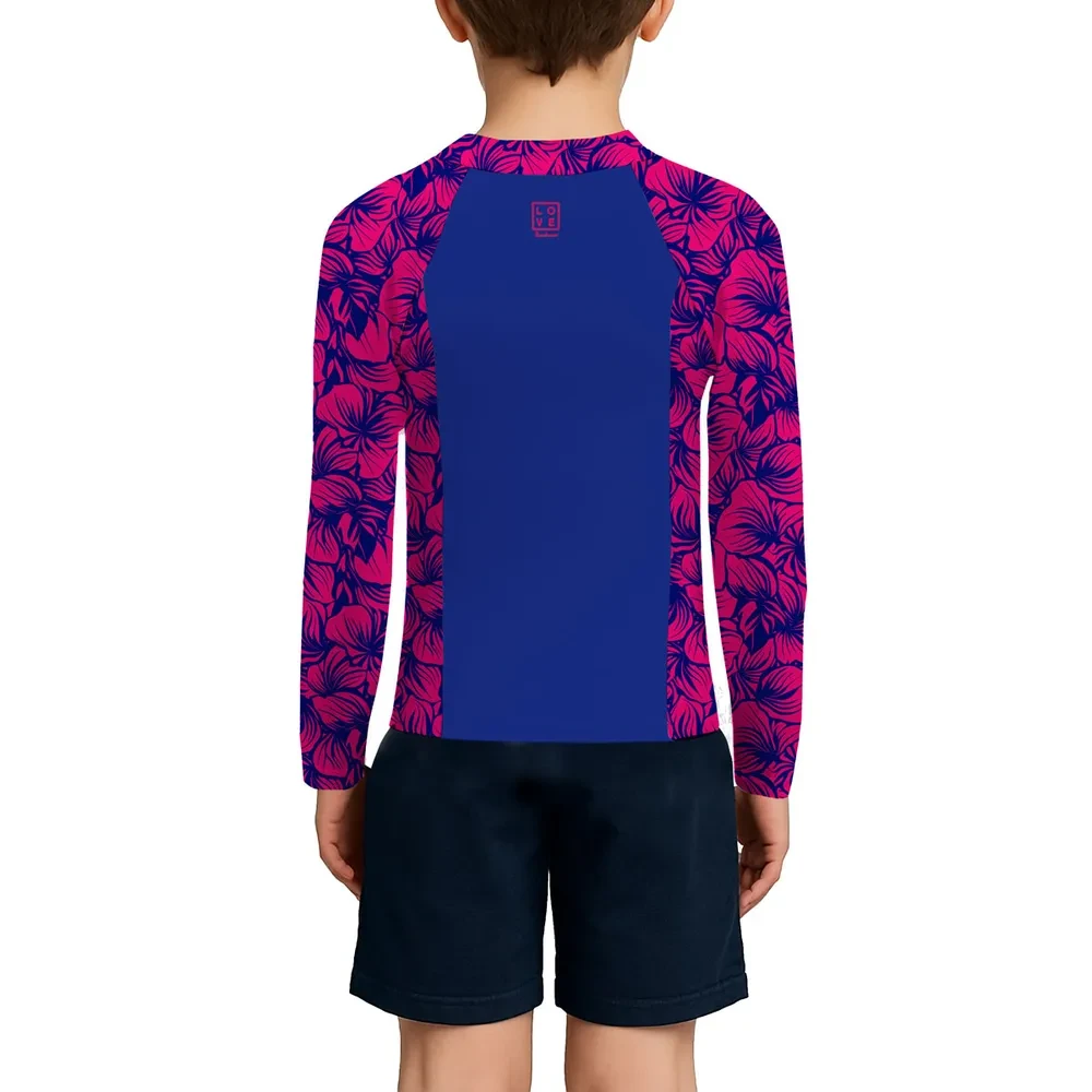 Kid's Rashguard – Hibiscus – Blue/Pink