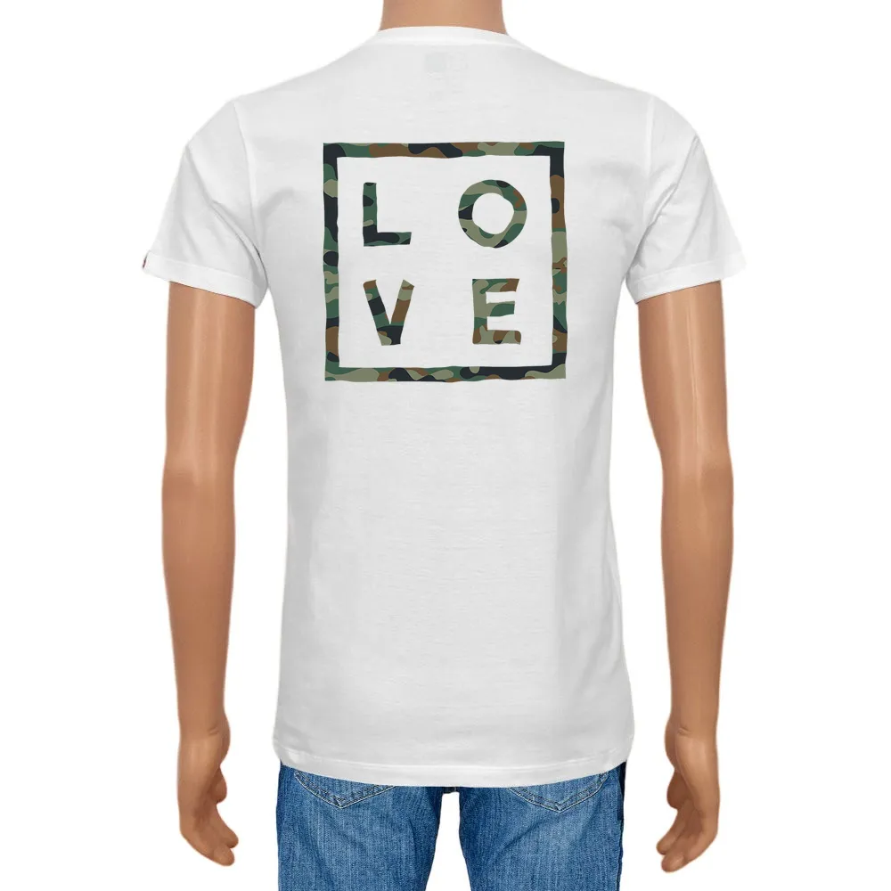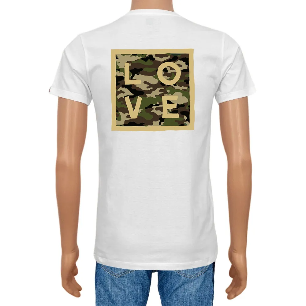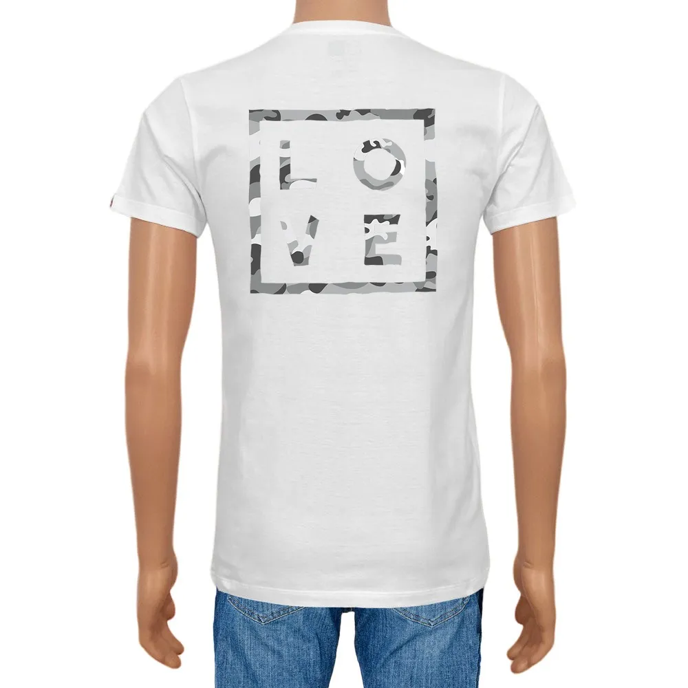 Men's T-shirt Cotton Plain V-Neck White Logo Camouflage - Love Concept Store