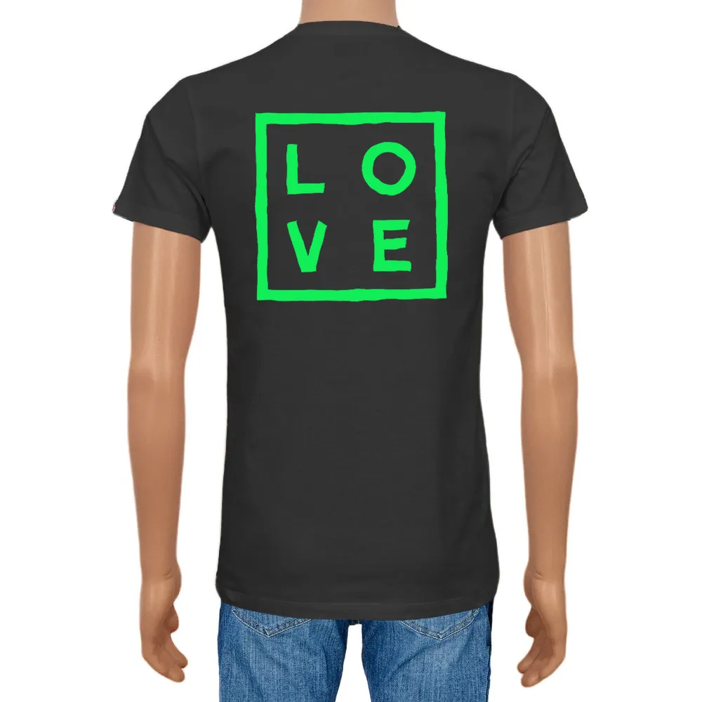 Men's T-shirt Cotton Plain V-Neck Black Fluo Logo - Love Concept Store