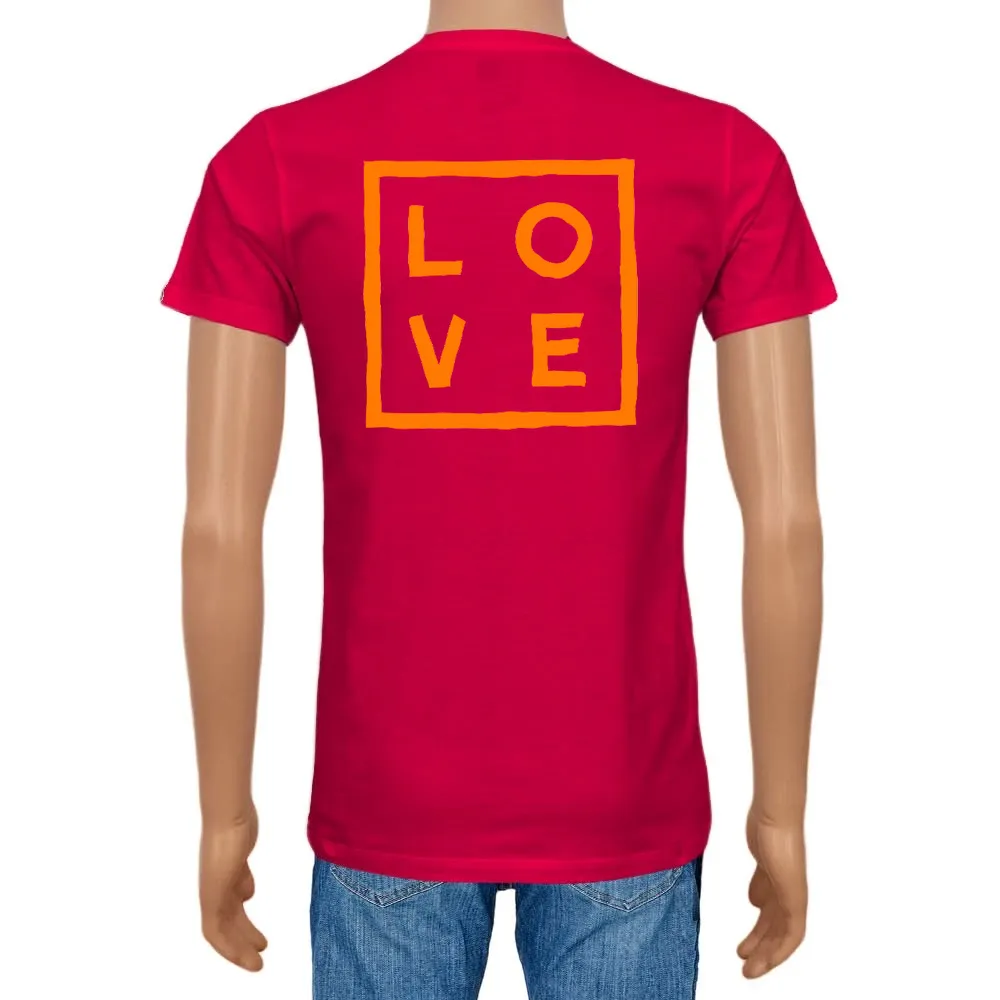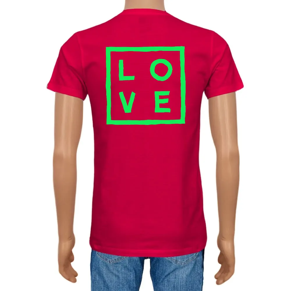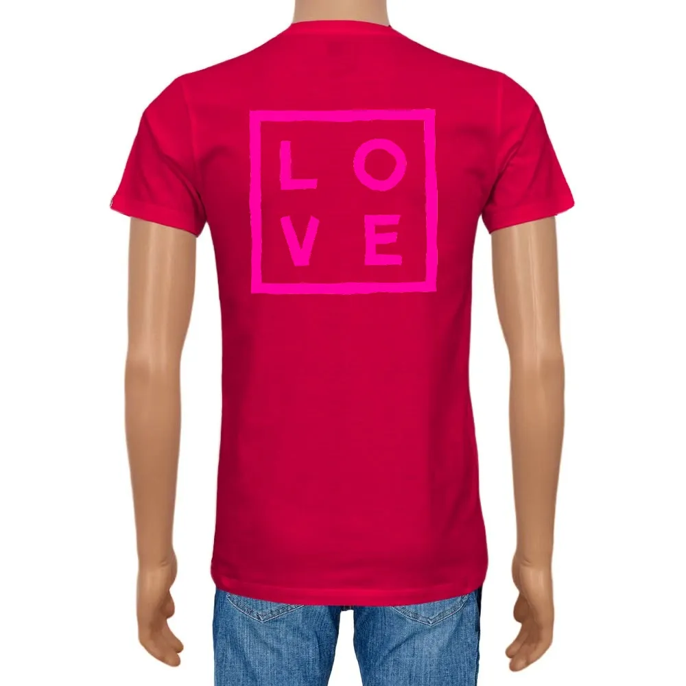 Men's T-shirt Cotton Plain V-Neck Cherry red Fluo Logo - Love Concept Store