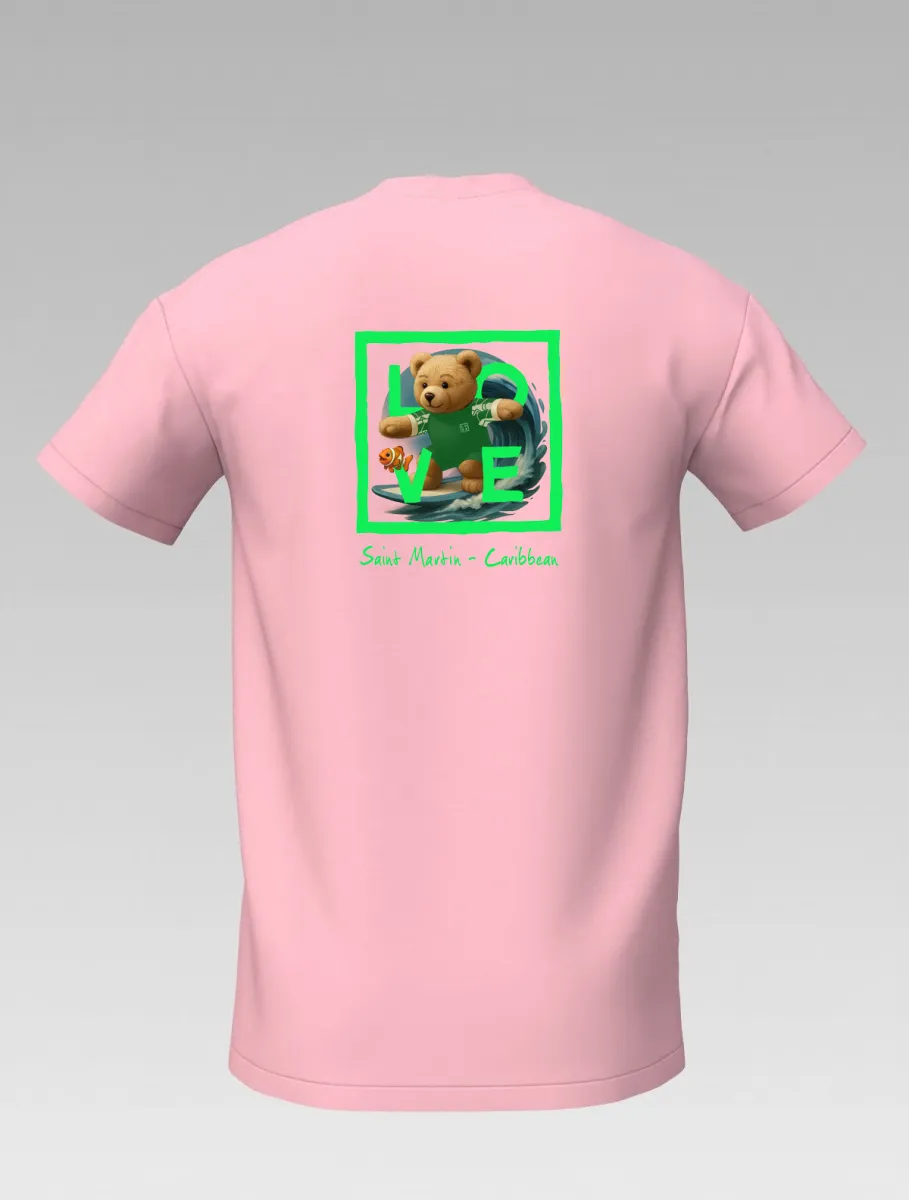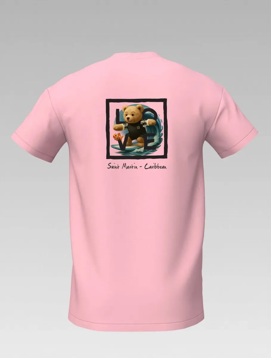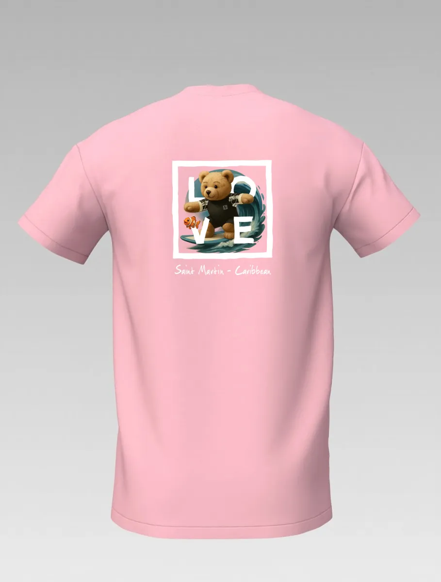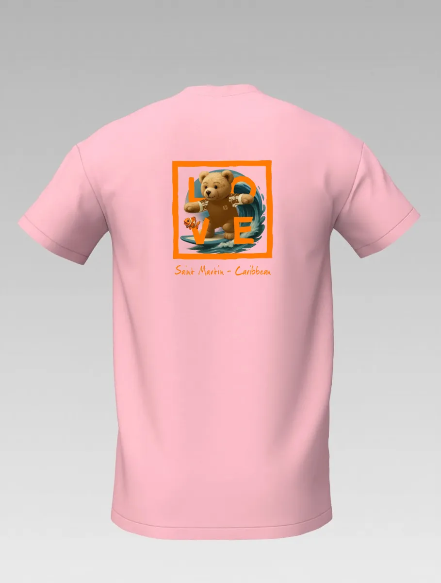 Pink Kids’ T-shirt – Surfing Bear – Signature St Martin – LOVE Edition