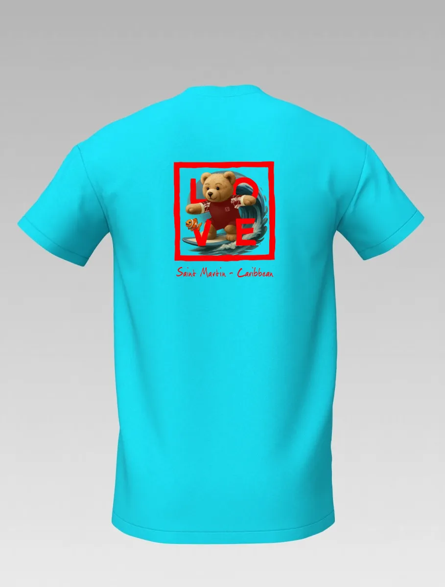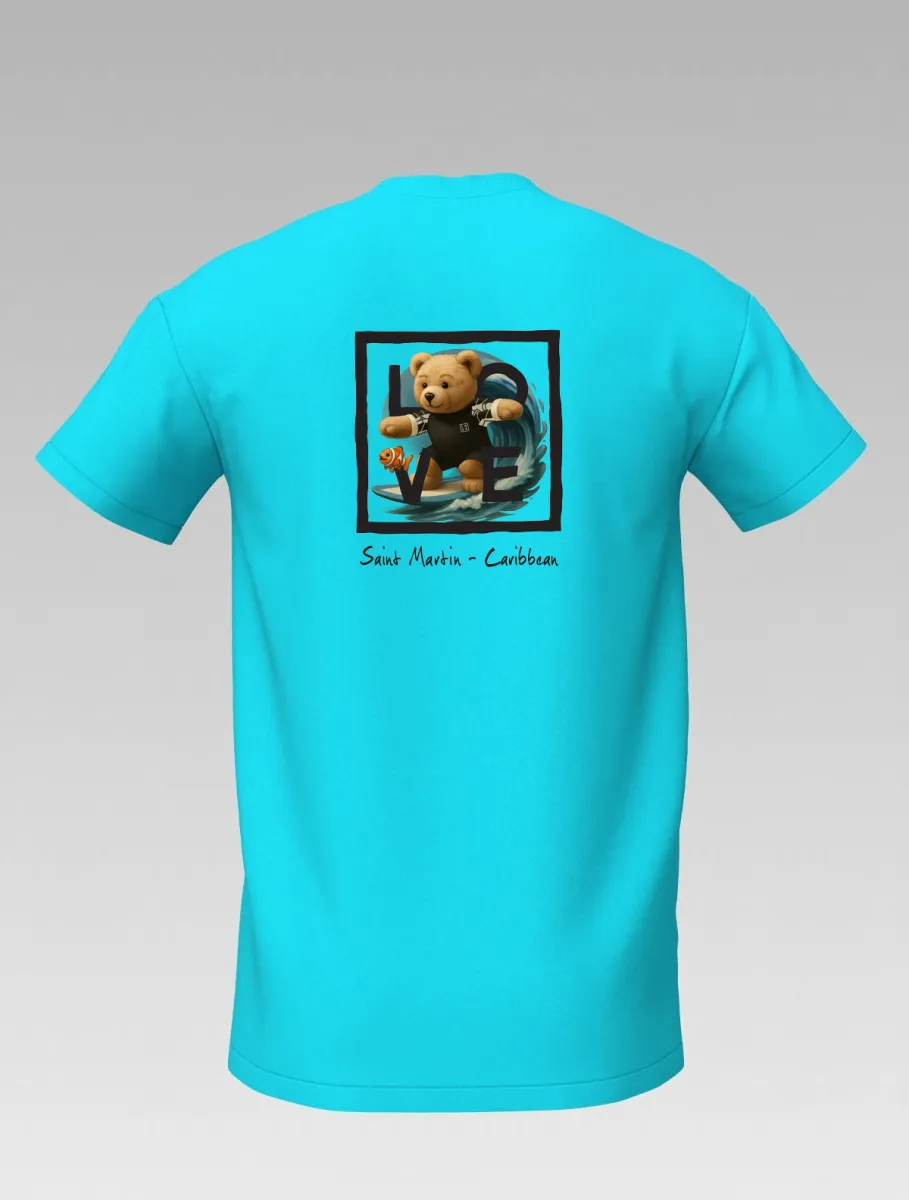 Turquoise Kids’ T-shirt – Surfing Bear – Signature St Martin – LOVE Edition
