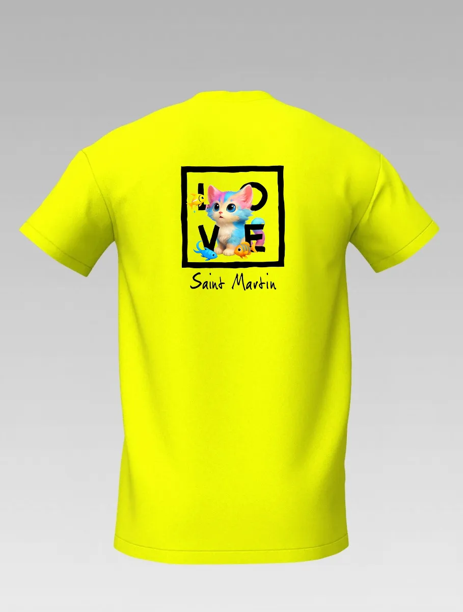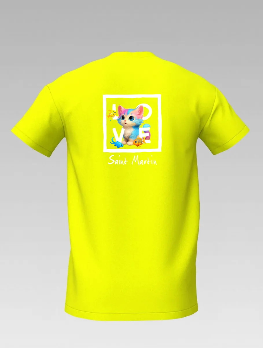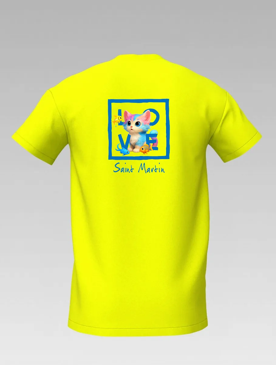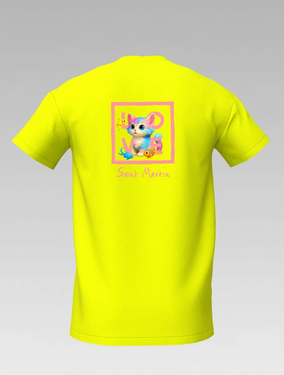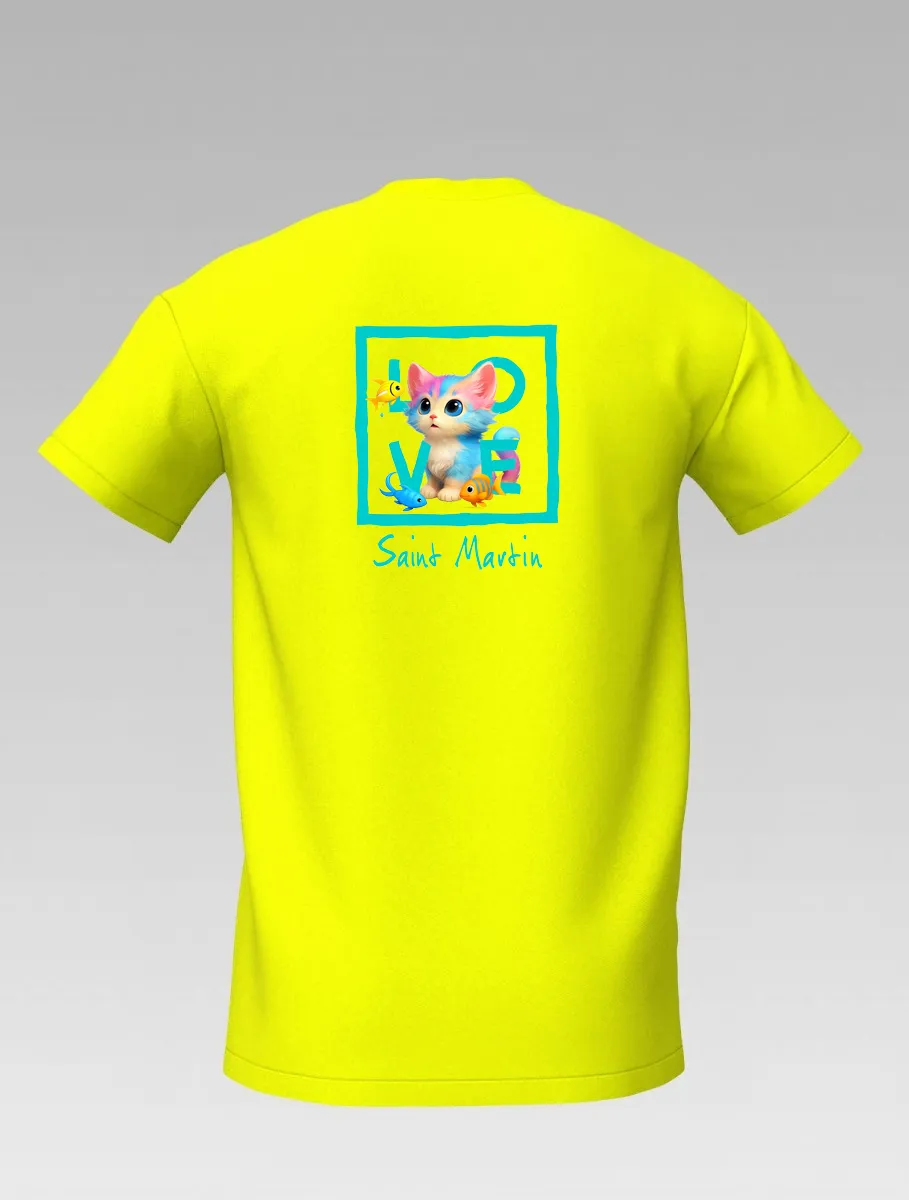 Yellow Kids’ T-shirt – Playful Cat and Fish – St Martin Signature – LOVE Edition